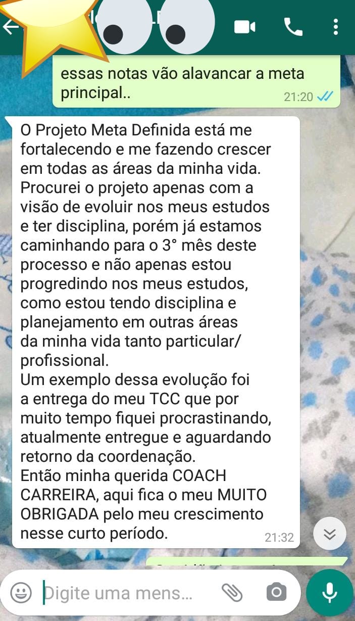 ”O projeto Meta Definida está me fortalecendo e fazendo crescer em todas as áreas da minha vida. procurei o projeto apenas com a visão de evoluir nos meus estudos e ter disciplina, porém, já estamos caminhando para o 3° mês..."